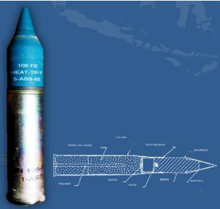 Adalah proyektil anti tank berkecepatan tinggi menggunakan tungsten penetrator yang dapat menembus baja tebal hingga 100 mm pada jarak 1.500 meter.
