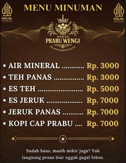 Bakso Prabu Wengi menyajikan bakso dengan resep rahasia yang telah teruji. Dijuluki "Rajanya Bakso Malam", bakso ini menjadi pilihan tepat untuk mengisi perut setelah berkeliling museum.