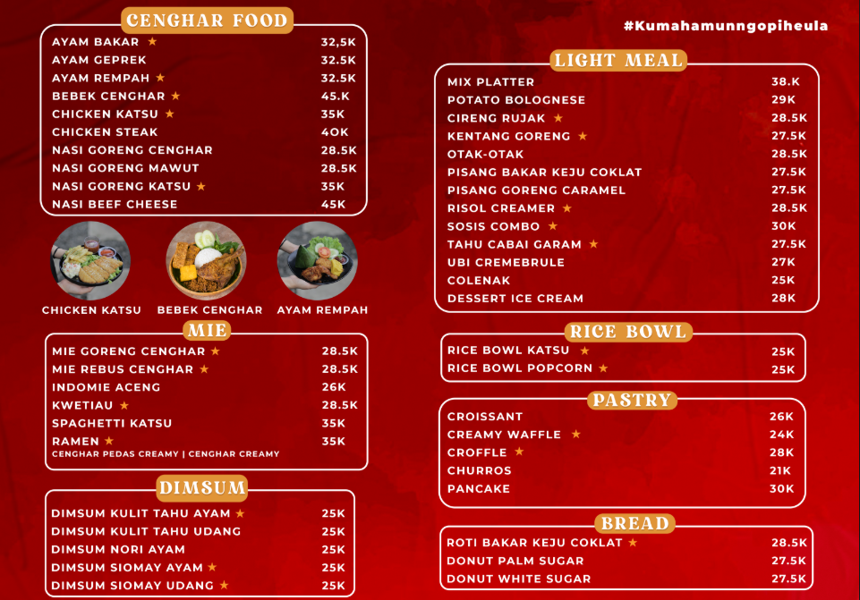 Daftar menu yang tersedia